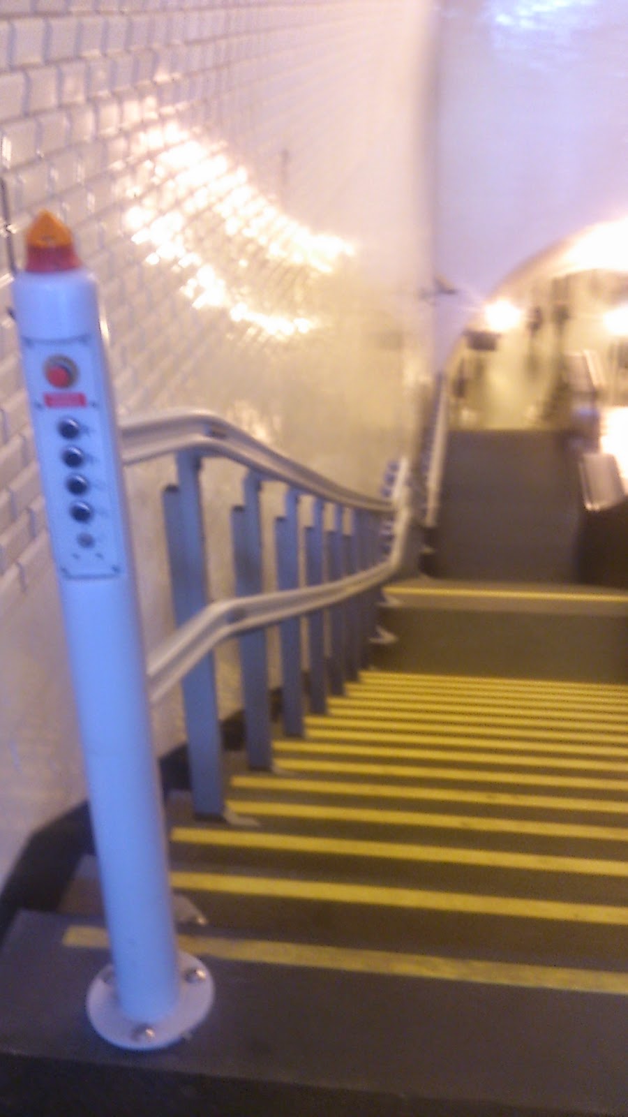 Ainda se conseguiu instalar, nas escadas do lado da rua do Crucifixo, uma plataforma elevatória. Não seria a solução ideal porque a sua utilização requereria o apoio de um agente da estação e,portanto, não garantiria a autonomia que se deseja à pessoa com mobilidade reduzida. Mas nem isso funcionou, ao que consta por dificuldades de software detetados na altura dos ensaios de colocação em serviço...